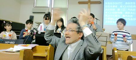 今日は練習してきたハンドベルを教会のイースター礼拝のなかで披露した小学生(新中1生)たちです。全7名のハンドベル隊は、たいへん上手に演奏することができました(写真は後日に)。