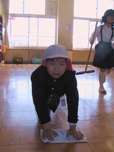小学校の掃除時間にちょうど合ったので、全くんの様子をカメラに収めたおかあさんです。全くんは4年1組です。明日は小学校は入学式で4年生はお休みです。