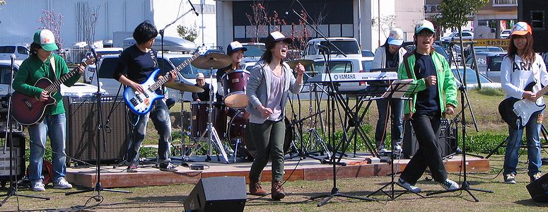 岡山県下のキリスト教会が集まって、クリストファーサン国際大会が岡山ドームで今日、明日と開催されます。いろいろなプログラムがありますが、倉敷教会の青年たちのバンドの演奏もありました(写真)。晴天のもと、野外での演奏です。