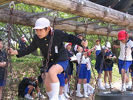 小学校では1年生を迎える会がありました。プログラムの中で仲間作りゲームを1年生から6年生まで在校生が一緒に楽しみました(写真)。これは昨年の1年生を迎える会でも行われたゲームです(昨年の写真中)。