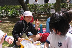 昨日はこのページを更新し忘れて失礼しました。今日は教会のバザーです。多くの方が来てくださいました。我が家の子供たちも大きくなって、特に上の2人は教会スタッフのお手伝いをいろいろできるようになりました。啓くんは、右の写真撮影の後、おとうさん担当の焼きそば作りを手伝ってくれました。