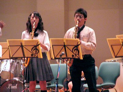 全くん昨日のサッカースクールの様子(上2枚)です。コーチとお別れをしました。下は今日高校文化祭でステージ演奏した吹奏楽部です。サックスでSoli(2人でメインメロディー演奏)の部分はスタンディングでの演奏です(下左)。