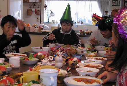 お昼からハシモト家で5家族が集まってクリスマスパーティーを開きました。クラッカーをならして、ごちそうをいただきました。ビンゴゲームで景品ももらって子供たちはたいへん楽しく過ごしました。明日は教会のクリスマス礼拝と祝会、来週はクリスマスイヴ礼拝や子供クリスマス会など楽しい行事が続きます。