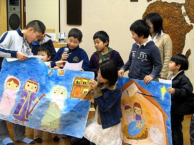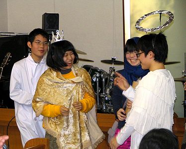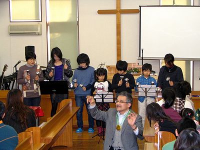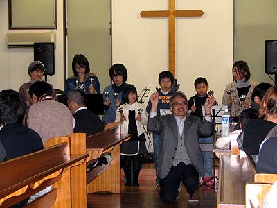 お昼からはファミリークリスマス会で、中高生によるクリスマス劇や小学生たちのハンドベルなど、楽しい2時間を過ごしました。