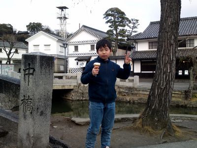 礼拝が終わった午後、全くんと美観地区にお散歩に出かけました。寒くても「ソフトクリームを食べる」と主張して実行した全くんです。すれ違った観光客にも「ソフトクリーム食べている!」と驚かれていました。蒜山ジャージーソフトはおいしかったけど、さすがに食べ終わって本人も寒かったそうです。