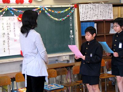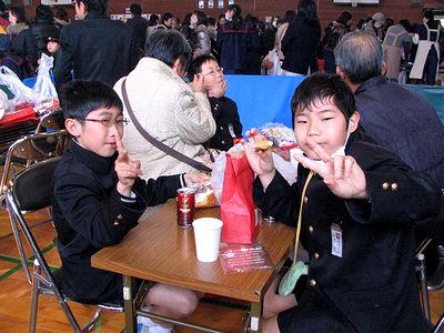 小学校は自由参観と4年生の1/2成人式でした(3年前の啓くんの1/2成人式はこちら)。左上は英語の授業(3校時)の様子です。写真上中は1/2成人式(5校時)での全くんのスピーチです。そのあとクラス全員で歌とたて笛演奏をして、おうちの方(代表3名)に「感謝状」を渡しました。その後、学校バザーで全くんはおこずかいでシュークリームを4個食べ、缶コーヒー(10円)を2つ買って1つを友だちにごちそうしたそうです(写真右下)。