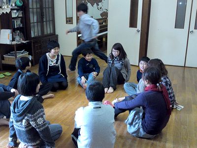 教会学校のキッズクラブで、チョコフォンデュ・チーズフォンデュの会でした。牧師先生のお話を聞いて(写真左)から、おいしくいただきました。アトピーの全くんは残念ながらチョコは食べられませんが、チーズだけでも大満足でした(写真中)。ゲームの時間でおこなったハンカチ落とし(写真右)が意外の大人気で、予定時間を延長してみんなで楽しみました。