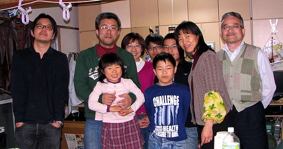 先月の夕食会の時に撮った記念撮影です(こちら参照)。お客さん一家の二人目のお子さんは先に眠ってしまったので一緒に写っていません。