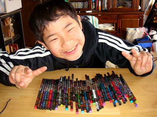 長男は部活があり、次男は教会の青年会でお花見でした。おとうさんは全くんと昼食後にサイクリングがてら酒津公園まで行き、ちょうど盛りの桜を見てきました。午後は結構暖かくなり、コーラをおいしく飲みました(写真右上)。帰りにイオン倉敷により、全くんはおこづかいでバトエン(バトル鉛筆)を大量買いしました(左下)。なんと4000円超です!帰宅してさっそく同じ宿舎に住むお友達を誘ってバトエンで遊びました。