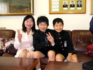 小学校では離任式でした。式のあとにお世話になった先生と一緒に記念撮影させてもらいました。