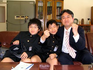 昨日入学式をすませた1年生が初登校です。私たちの宿舎にも新1年生がいて、全くんたちと一緒に登校しました。