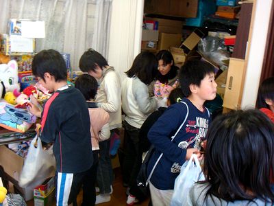 教会のバザーでした。たくさんお客さんが来てくれました。おかあさんはオモチャ売り場の担当です。長男はおとうさんと一緒に焼きそばを作りました。次男、三男は基本的にお客さんですが、いろいろお手伝いもしてくれました。