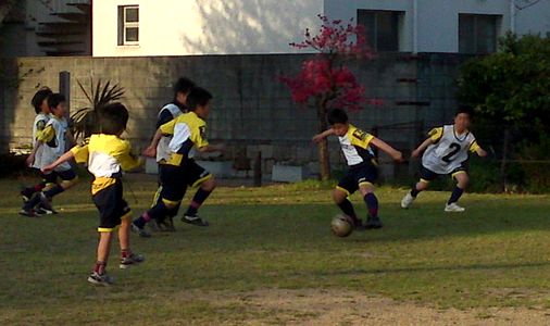 写真は今日のサッカースクールの様子です。その後に夕食はおとうさんの誕生日を祝って外食でした。ステーキ、海老フライ、お刺身、茶碗蒸しからデザートのソフトクリームまでなんだかいろいろ付いている「びっくり御膳」というコースでした。