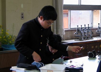 中学校の参観日でした。理科室で電圧計を使った実験をしていました。実験はあまり上手にいかなかったそうです。
