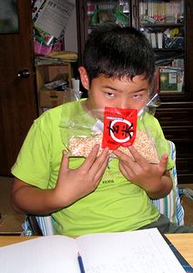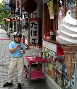 梅雨空ですが、雨が降らないと気温は高くて湿度も高くて昨日も今日も蒸し暑くなっています。昨日の午後は全くんは自費でかき氷を買って食べました。コーラ味です。かき氷が似合う季節になりました。このお店はこちらでソフトクリームを食べているのと同じお店です。かき氷は(ソフトクリームも)100円なので子供の小遣いでも買えるんです。
