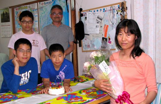 おかあさんの誕生日をお祝いしました。バースディケーキは子どもたちががお金を出し合って、雨の中をケーキ屋まで買いに行きました。