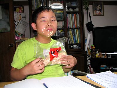 下校してピアノ練習をして、すぐ昼寝した全くんです。夕食は寝起きだったこともあり、テレビを面白く見ていたこともあり、すすみが遅くて食べ始めてから食べ終えるまで1時間20分もかかっていました。時々、こういう風に夕食に1時間以上かかる困った全くんです。給食を食べるのはクラスで一番はやい方ということですが・・・