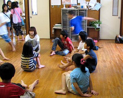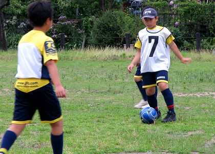 サッカー教室の日です。練習中の様子です。今日も暑い日でサッカーしたので、くたびれて宿題終える前に眠くなってたいへんでした。