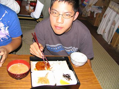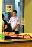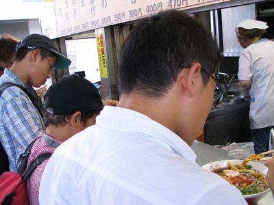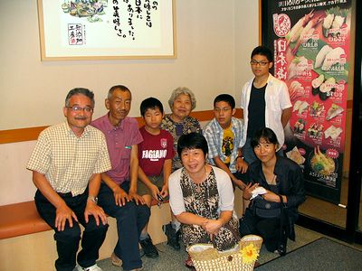 月曜日朝6時33分倉敷駅発の電車に乗り、青春18きっぷをつかって普通列車を乗り継いで茅ケ崎に来ました。途中乗り換えの静岡駅でホームの立ち食いソバならぬ立ち食いラーメンを食べました(左)。茅ケ崎ではおじさんたちも加わっておばあちゃんと一緒にお寿司屋で夕食です(右)。