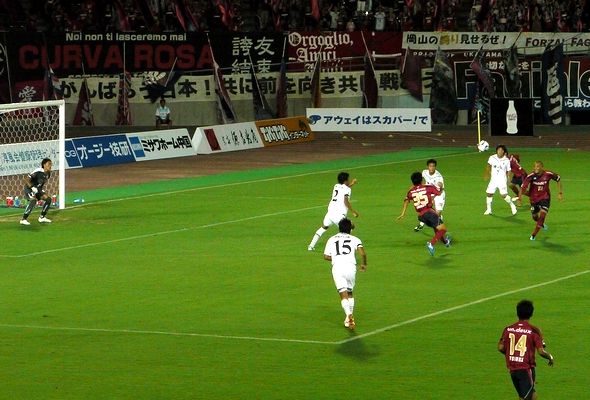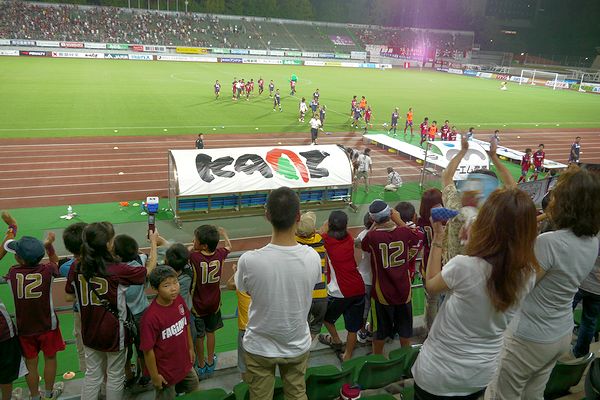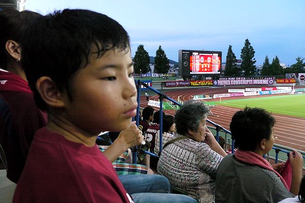 昨日のサッカー観戦の様子です。全くんもファジアーノユニフォームTシャツを着て応援です。右上は久木田選手(35番)がシュートをする直前のところで、このシュートでチームの2点目が入りました。試合は最終的に4対0のスコアで完勝でした。もちろんサポーターたちは大喜びで試合後にピッチを引き上げる選手たちに拍手をおくりました。