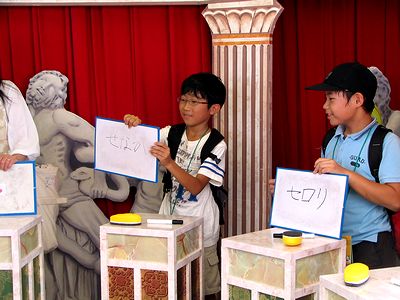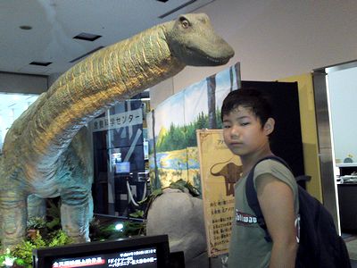 全くんは、夏休みの自由研究と工作のネタ探しに倉敷科学センターにおとうさんと出かけました。アルキメデスの揚水ポンプ(アルキメディアン・スクリュー)を見て、アルキメデスとそのポンプを自由研究のテーマとすることにしました。科学センターでは恐竜と小惑星探査機はやぶさについて展示もあり、それらの全天周映画も見てきました。写真は恐竜の特別展示室でのものです。