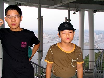 | 展望灯台(帰路の船から)。 | 展望灯台の上で。 |