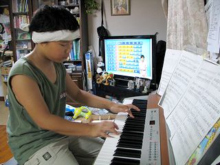 なんだかんだあって11月の学校音楽祭では1曲目のピアノ伴奏をすることになった全くんです。夏休み中もほぼ毎日練習しています。自宅は電子ピアノなので本物より鍵盤が軽いものですから、今日は小学校の音楽室のピアノを借りて、実際のタッチになれる練習をしてきました。日曜日にも教会のピアノを借りて練習しています。おかげで夏休みが明けて生徒たちの歌の練習が始まっても大丈夫なくらいには伴奏が弾けるようになってきました。