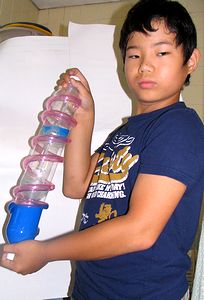 全くんが夏休みの工作としてこちらのWEBページを参考にして作成したアルキメデスのポンプ(いきさつはこちら)が、クラスで選ばれて倉敷ライフセンターに展示されることになりました。今日、明日が展示期間とのことですが、今日は台風の12号の接近で朝から風雨がひどくて外出できるような状態ではなく、見に行くことができません。午後1時過ぎには倉敷市からは「避難準備情報」が発令されました。