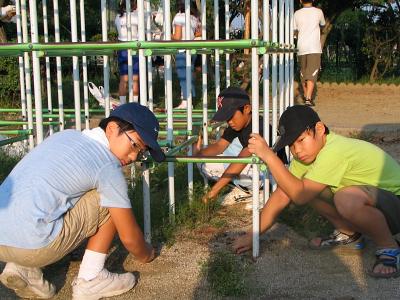 キッズクラブはたくさんの子どもたちが来てくれました。写真(左上)はそうめん流しが始まる前の、じゃんけん大会の様子です。メーンイベントのそうめん流しは、手伝い(そうめん供給など)に忙しくて写真を撮っている時間がありませんでした。中学校の体育会は好天で暑すぎる陽気でしたが、みんながんばっていました。次男は障害物競争、部活対抗リレー、800メートルリレー(選抜)に出て、さすがに最後はくたびれていました。でもクラスが優勝して、たいへん上機嫌です。