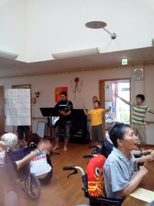 教会学校では敬老の日にちなんで近くにあるケア施設を訪問しました。振つきの賛美をしてみなで礼拝を持ち、入所している方々と触れ合いました。子供たちがくるとお年寄りはやっぱり喜んでくださいます。