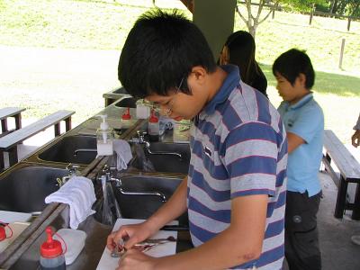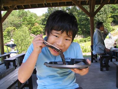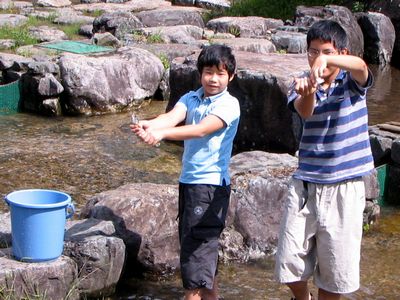 教会に集っている4ファミリーで蒜山の津黒高原に行き、魚のつかみ取りとBBQをしました。とった魚はさばいて、すぐに焼いてとても美味しくいただきました。好天のもとで楽しむことができました。