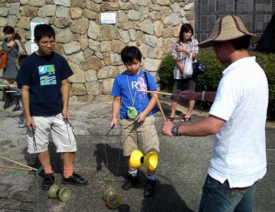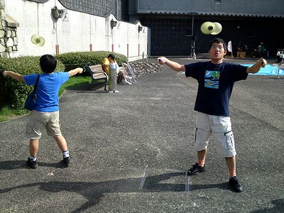 倉敷市芸文館前広場で開かれていたフェスティバル(?)に礼拝から帰宅後に出かけてみました。ディアボロ(中国ゴマに似た、ジャグリング道具の一つ)を教えてもらって挑戦しました。しばらく練習すると、コマを投げ上げてキャッチするハイトスができるようになりました。