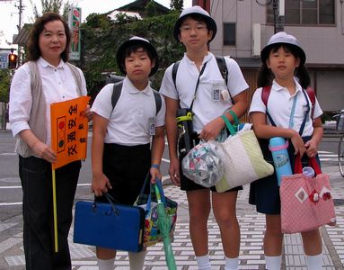 交通安全週間で、昨日月曜日の朝には地域の方々が交差点に立って登校する子供たちが道路を横断するのを見守る運動がありました。写真は朝7時半くらいの様子です。「一万人の交通マナー向上作戦」というのが活動の名称です。どうやって一万人という数字が出てきて、動員したのかは、わかりません。