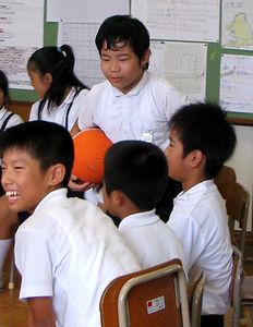 小学校5年1組では転校するクラスメートのお別れ会兼お楽しみ会がありました。ゲーム(写真右は爆弾ゲーム)をして思い出のスライドショーを見て、転校する友だちにエールを送りました。