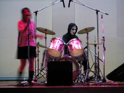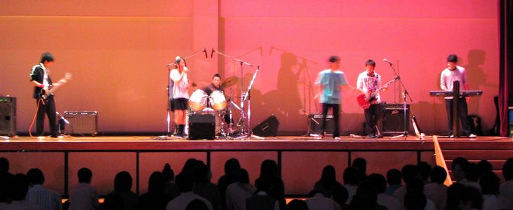 昨日、長男が文化祭で出演したバンドの舞台です。最初、仮面をつけてドラムをたたいていましたが、途中ではずしました。PAの不手際でボーカルマイクの音が出なかったり、ベースの弦が切れたり、いろいろハプニングがありましたが、演奏で舞台を盛り上げることができたようです。