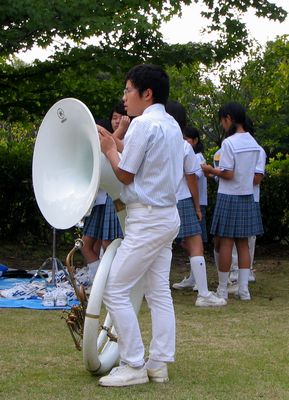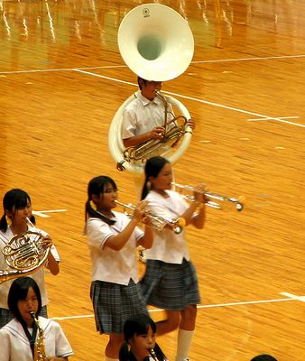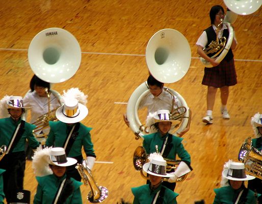 今日の午後はマーチングフェスティバルがありました。次男の西中学校も練習してきたマーチングを披露しました。写真上左は本番前に舞台(体育館)の外で音出ししていた時の様子です。フィナーレの全体演奏(下中)には全出演者が出るのですが、かならずしも全員で曲を演奏しているわけではないそうです。最後に体育館外で全員で「錨を上げて」を演奏して帰るお客さんを送りました。下右は、その演奏も終わって一段落した様子です。