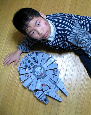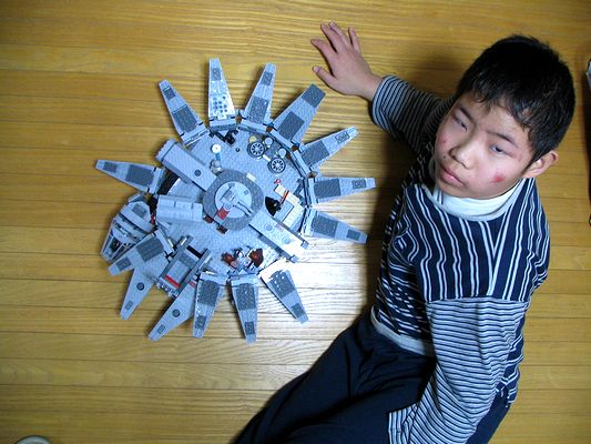 全くんは宿題/自主学習、ピアノ練習、今日から再開したサッカー教室以外は、ほとんどの時間をレゴに使って、夕食後にはミレニアムファルコン号を完成させました。上部が開閉できて中が見えるようになっていますので、開いた状態、閉じた状態の両方で記念撮影です。