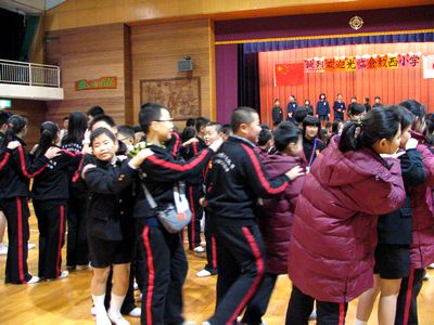 中華人民共和国の内モンゴル自治区から小学生たちが倉敷西小学校を訪問しました。5年生は歓迎会を開き、一緒にゲームをしたり歌を披露したり(写真右上、全くんはピアノ伴奏)しました。写真右下は歓迎会のあと全くんのクラスを中国の小学生たちが授業を参観した様子です。