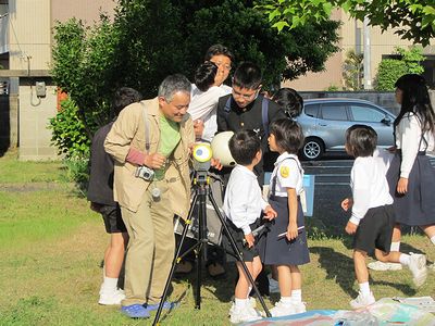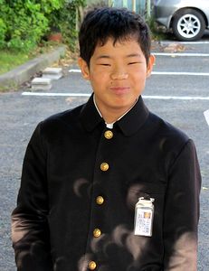 写真左は昨日の金星太陽面通過の合成写真です。写真右は先月21日の様子です。近藤さんが全くんを撮った写真を下さいました。三日月状になった木漏れ日が制服に映っているのがおもしろいところです。