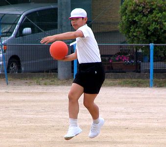 昨日の小学校の写真です。左は6年生の家庭科で「クリーン大作戦」で学校のなかでゴミやダストを探しているところです。右は業間休みでドッジボールをしているところです。