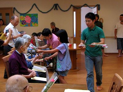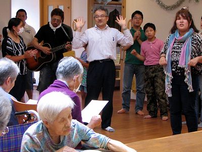 二段目は今日の午後に教会若者たち中心に近くのグループホーム楽々苑を訪れて賛美をしてバラをプレゼントしたところです。入居者の皆さんとよい交流ができました。