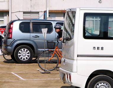 小学校で交通安全教室がありました。停車中の自動車の陰から自転車で出るところなどを練習しました。