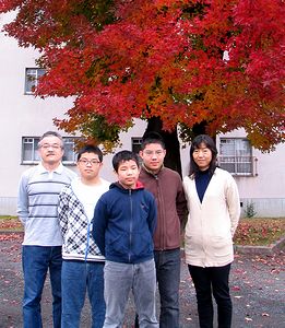 新しいゲーム機購入を許してもらう条件を先週日曜日に話し合ってから、日曜、月曜とできなかった全くんですが、火曜日から頑張っています。朝起きられないとダメなのでベット枕元上方(上向きに寝た状態で目に入る場所)に「起きろ!3DS」と書いた紙を貼っています。今日も学校はお休みですがちゃんと起きて来て、自主勉強や上靴洗いとかをやっていました。おかげで夕方にはTVゲームなどをする時間ができました。年賀状用に撮った家族写真がこちらです。
