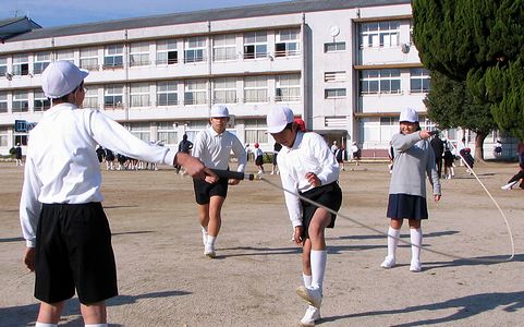 給食後の昼休みにあった長縄跳びの集会です。今日は練習で、本番の集会は12月だそうです。