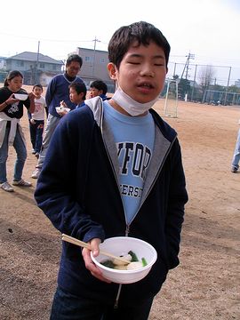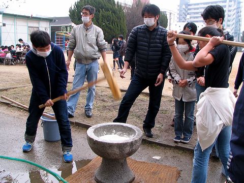 小学校では餅つきがありました。6年生は餅つきの主力です。いろいろなお餅をたくさん食べていましたが、プロの蕎麦屋のだし汁を使った雑煮(写真右)が一番おいしかったそうです。