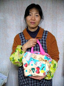 小学校の家庭科で「ランチバッグ」を作った全くんです。おかあさんへのプレゼントです。以前に啓くんが作ってくれた腕カバーも活躍しています。