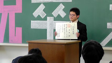 今日は高校の卒業式でした。無事に卒業証書をもらった長男です。
