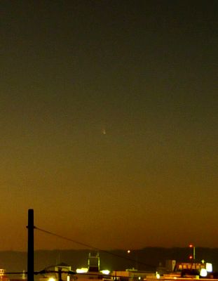 ここ数日話題になっているパンスターズ彗星を双眼鏡、望遠鏡を使ってですが初めて見ることができました。同じ宿舎にすむシュウちゃんと一緒に見ました。長男は遊びに出ていて、次男は誘っても関心がなくて本屋に出かけてしまいました。三男は興味はあったけど昼寝(夕寝)していて、起きたころには彗星は沈んでしまいました。