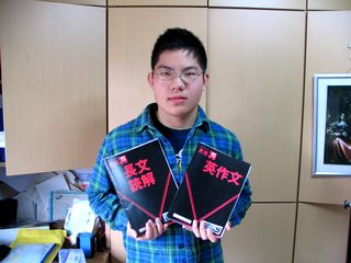 通信教育教材のアンケートに答えて(高校に合格した)本人の写真を送ると「もれなく」図書券1000円分がもらえるということで、積極的にアンケートに答えて応募した次男です。