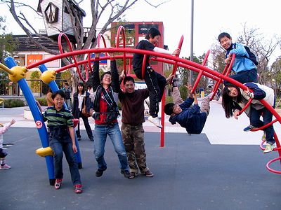 千葉に転校した西くんが親と倉敷を訪問する機会に、かつてのクラス仲間で集まろうということになりました。兄弟関係も含めて7人集まりました。写真の場所はチボリ公園跡地にできた倉敷みらい公園です。
